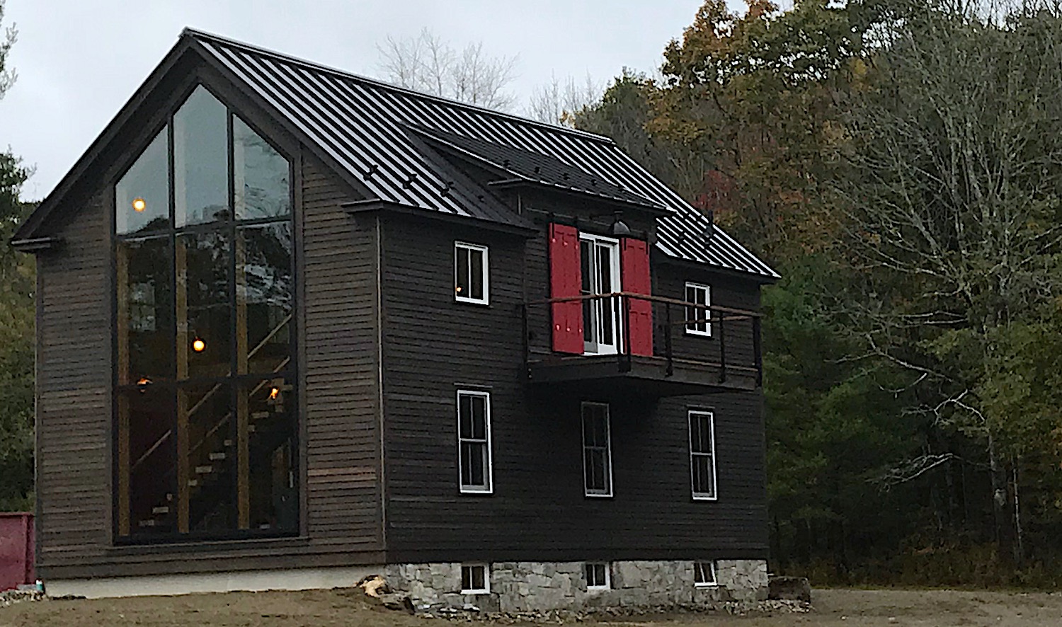 The midcoast town of Edgecomb, Maine, embraces the Yankee custom of reusing, repurposing and even relocating structures for new uses. A century-old barn was recently moved and restored as part of a family summer compound near the Sheepscot River. Rousseau Reclaimed sourced lumber for stair risers from the ground floor to the second floor, and in the sleeping loft. John was able to find barn board to match the structure’s original wood, providing the materials for a kitchenette and bathroom on the second floor. The resulting building is multi-purpose. The ground floor has double-wide doors to accommodate all-terrain vehicles while the second floor and loft provide living quarters. The barn’s new location is surrounded by woods with a perfect view of both the Sheepscot and Back Rivers.