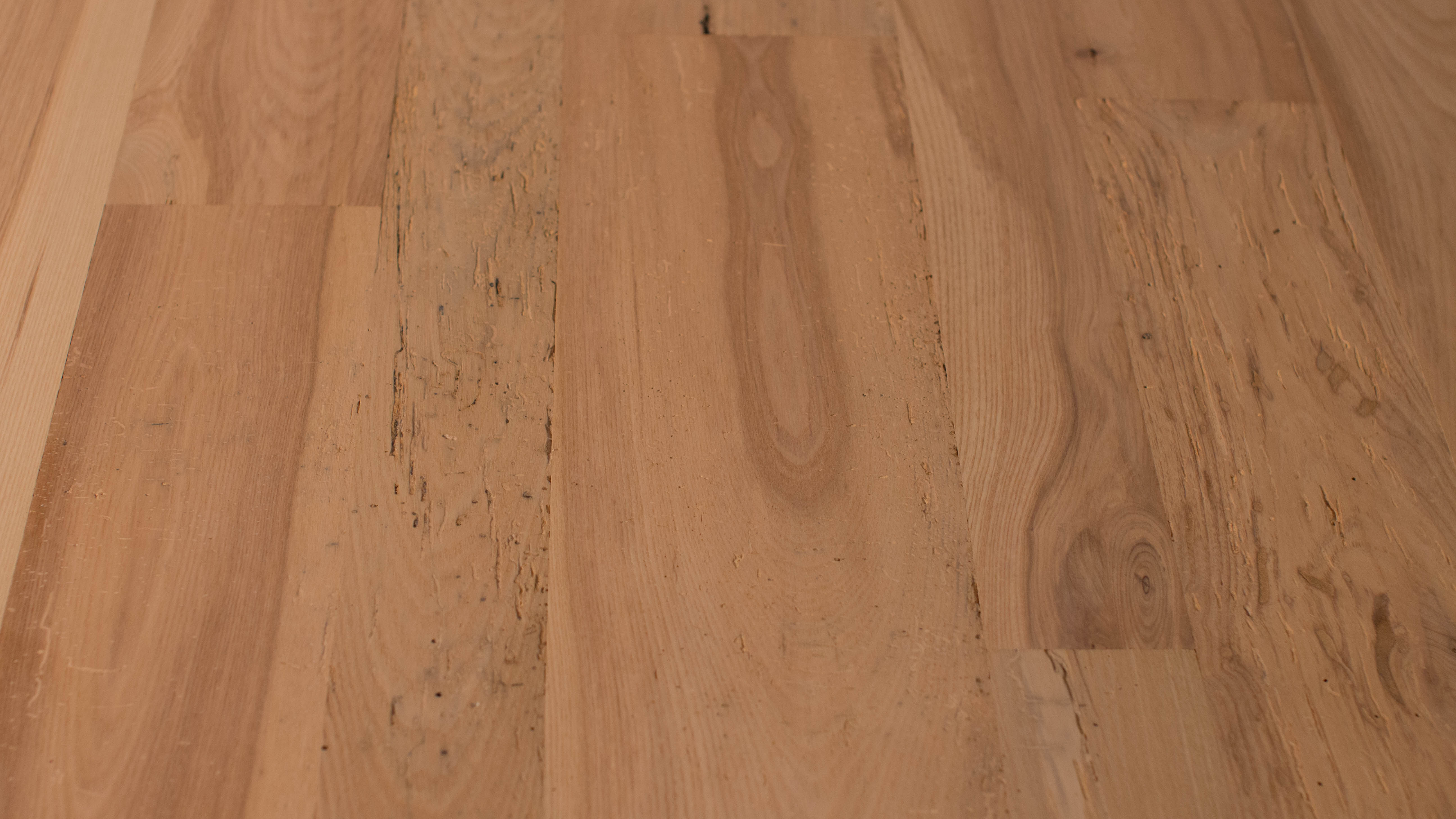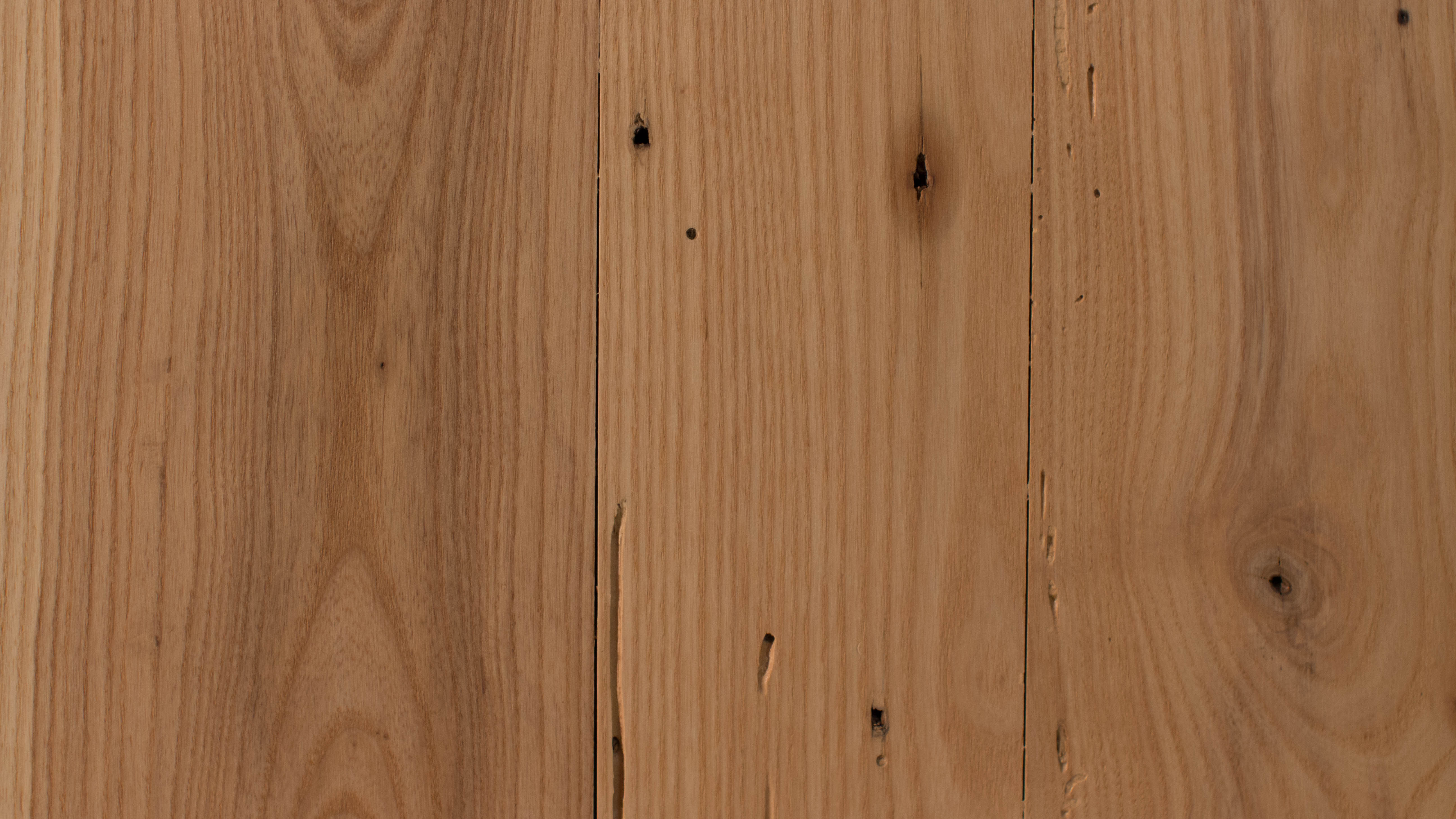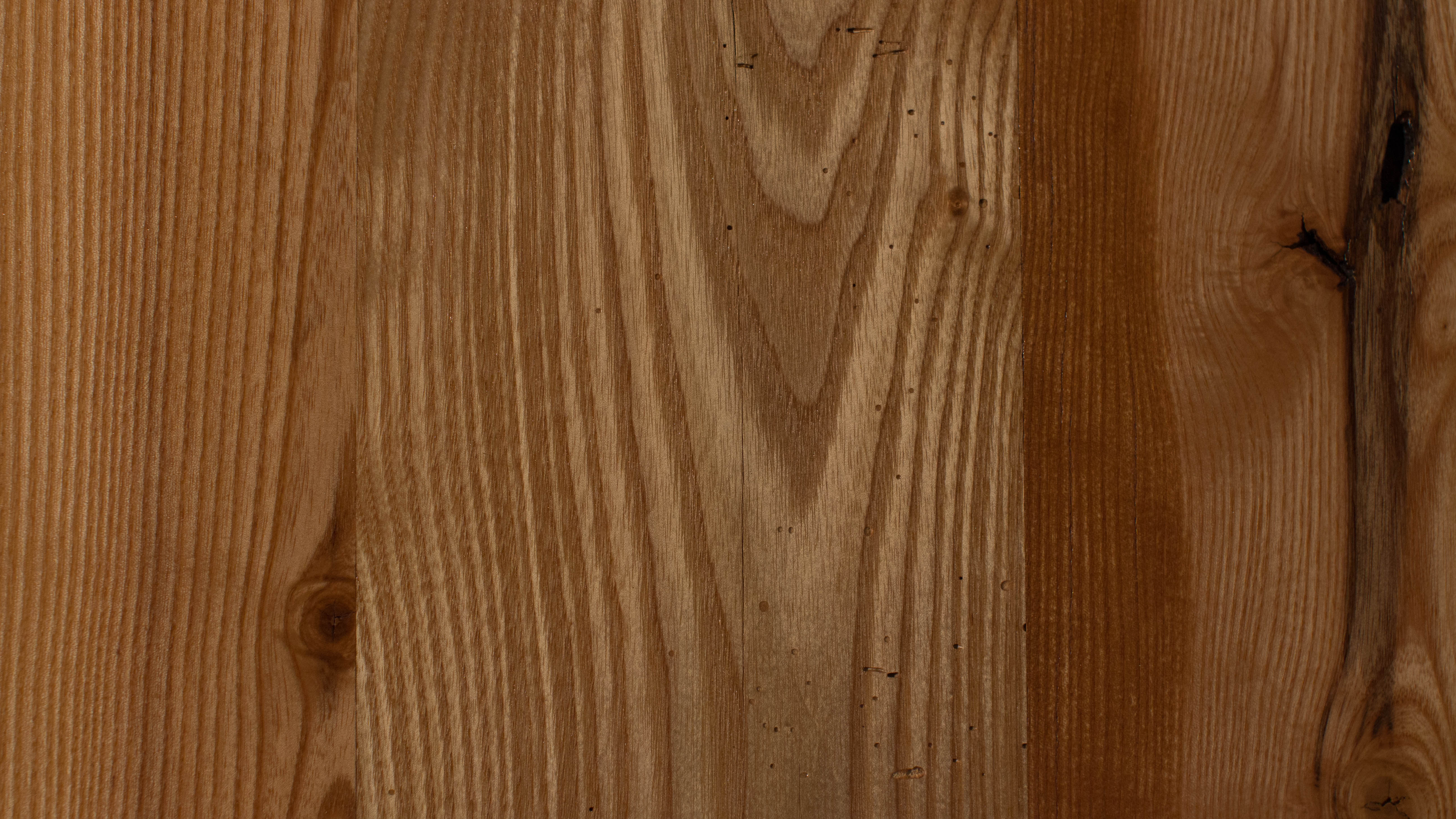 Some types of ash were used in making fabric dyes, but this sturdy wood is better known for making baseball bats. Ash is quickly being destroyed by the Emerald Ash Borer, an invasive insect originally native to Asia and now spreading in North America. Ash is in danger of becoming extinct, just like the American chestnut tree. Known as the “champagne of hardwoods” because of its beautiful golden tones, ash will brighten up any house. It also has varying light brown earth tones. Characteristics include: knots, light distressing, insect scarring, nail holes and other natural or man-made markings.