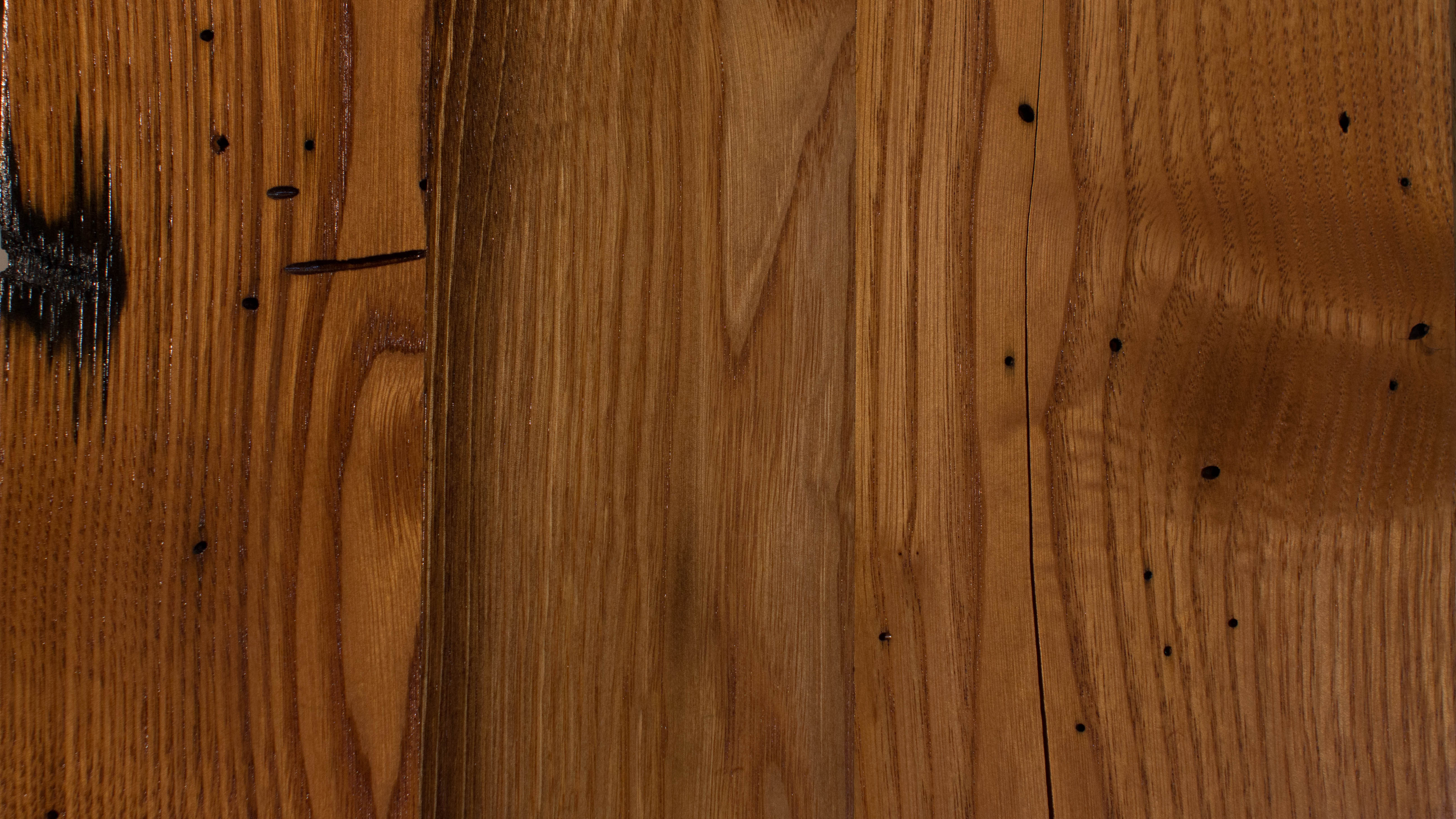 American Chestnut was the quintessential North American hardwood due to its myriad uses. However, at the turn of the 20th century the species was wiped out by a blight and has been unable to make a sustainable comeback. This is an elusive and highly desirable but finite wood, and the only way to obtain chestnut lumber is through building reclamation. Chestnut is still prized because of its sophisticated romantic reddish brown tones and authentic character. Some chestnut planks have more wormy texture which enhances the overall sophistication of this wood. Some of its characteristics include: rich color variations of dark and light tones, light distressing, sound cracks, knots, nail holes and worm patterns.