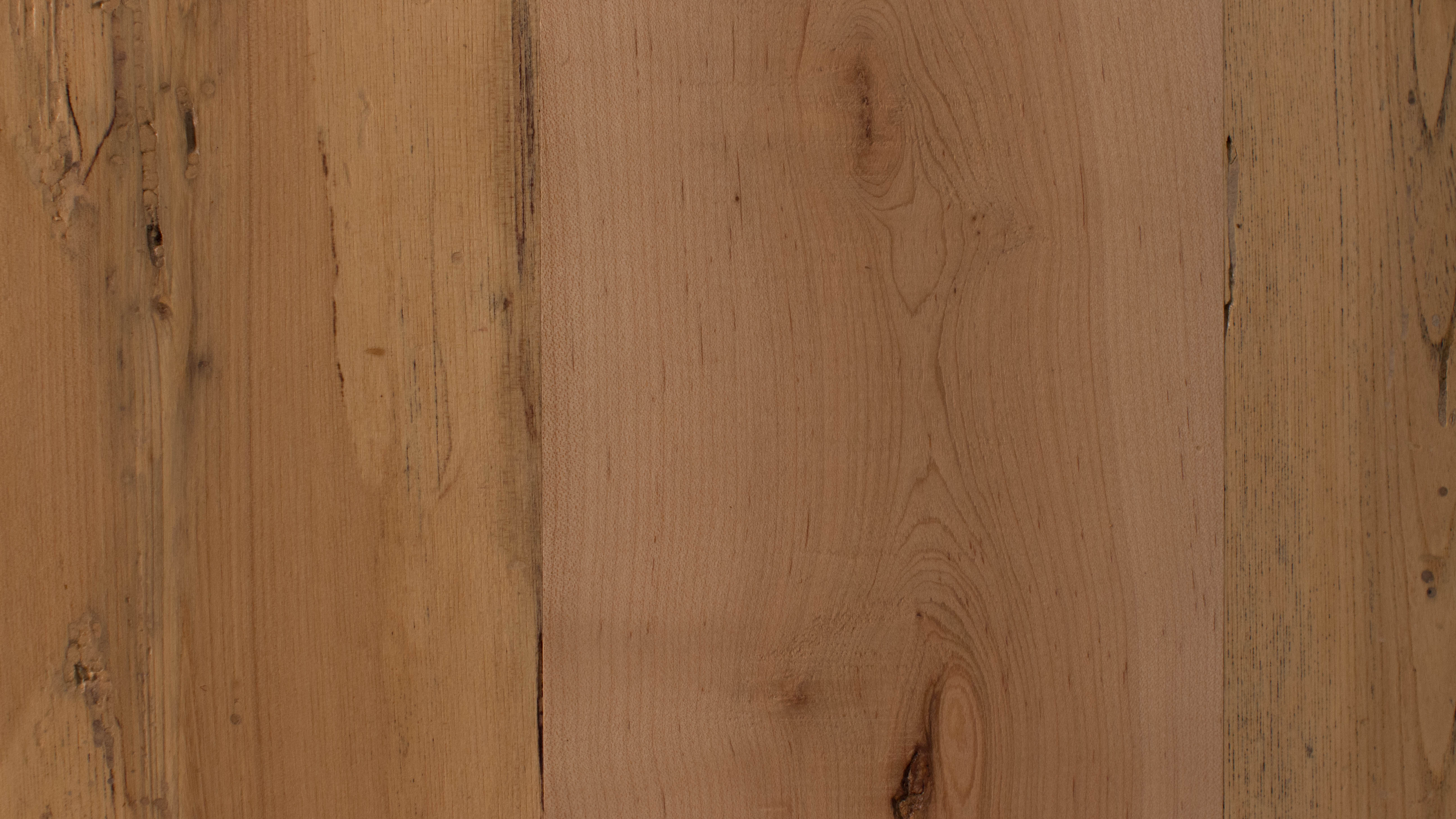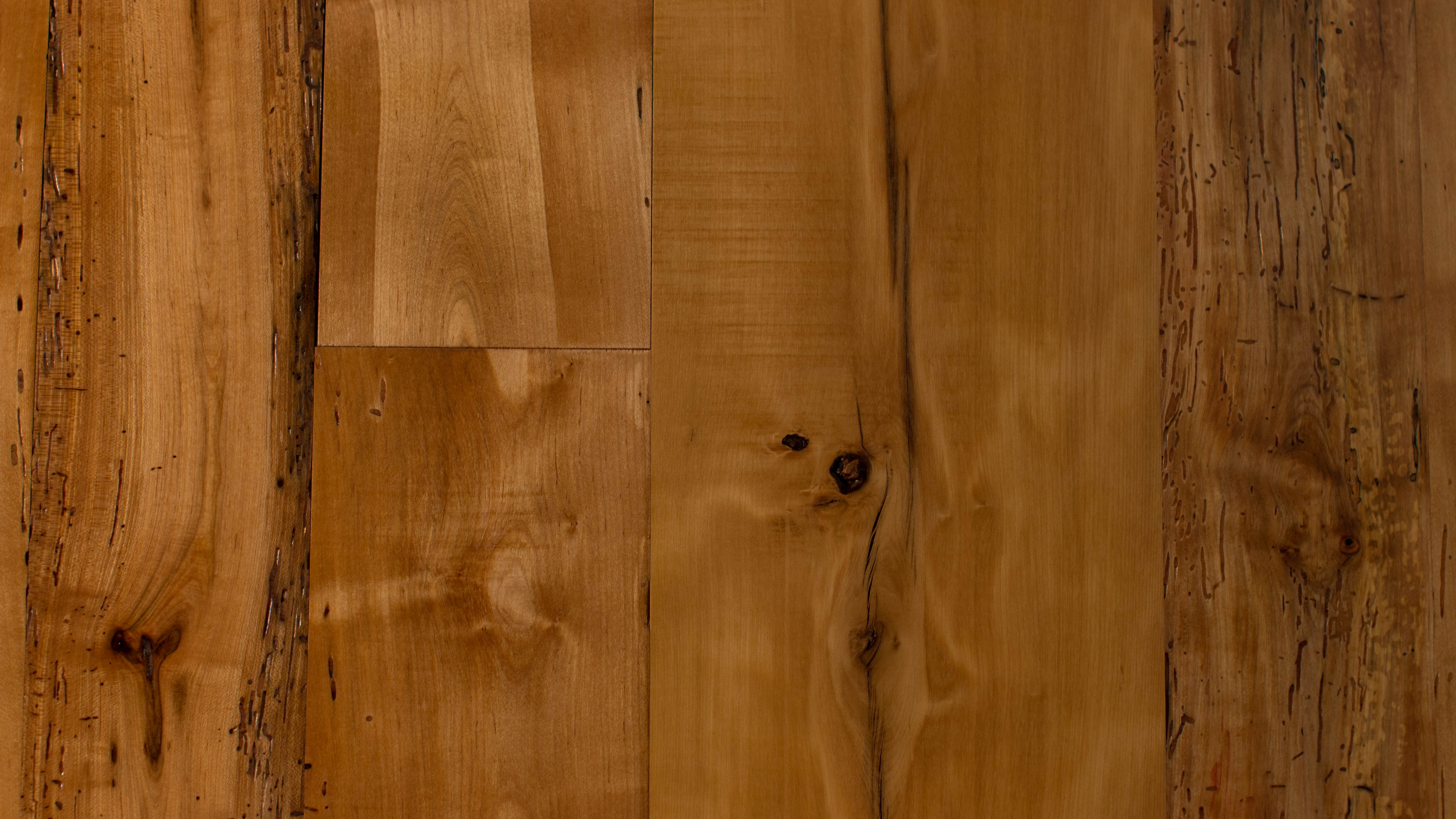Commonly found throughout New England and the midwest, maple is often found in agrarian buildings. Bright, blonde and full of character, maple will take on its own unique character as it ages, including warm tones, insect scarring, distressing and Spalding, a process that happens in Maple. Some of its characteristics include: color and grain variations, knots, saw kerf, light distressing, nail holes and other natural and man-made markings.
